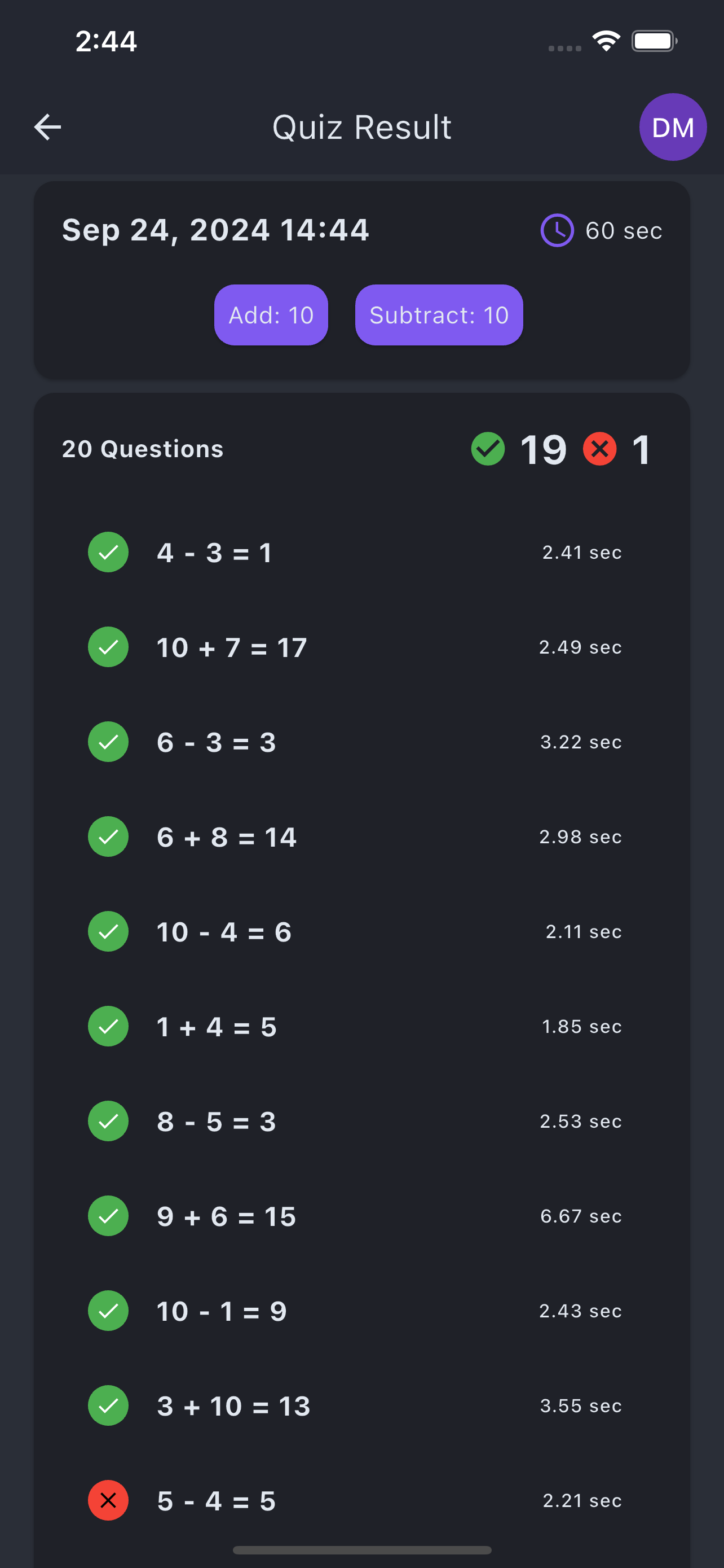 Math Minute offers a variety of features to enhance the learning experience. Users can create multiple profiles, allowing siblings or classmates to track their progress independently. After each quiz, detailed results are provided, enabling users to review their performance and identify areas for improvement.